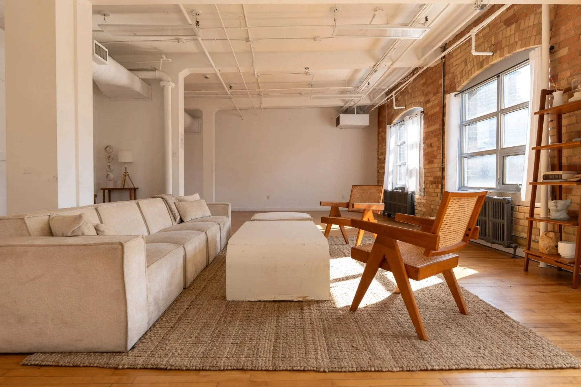 Hygge has natural light pooling in from its southern exposure. The exposed brick wall transports you to a chic loft somewhere in SOHO. Opposite the window-lined brick wall two walls have been outfitted with paneling for added character and depth in your photos.